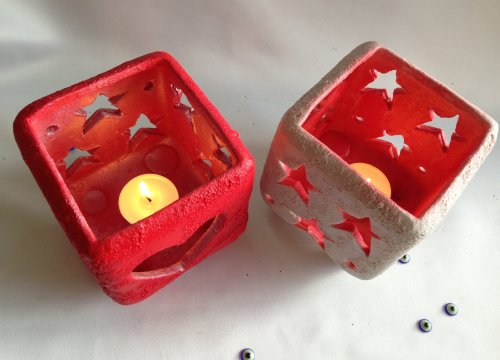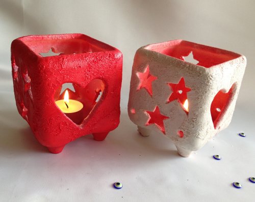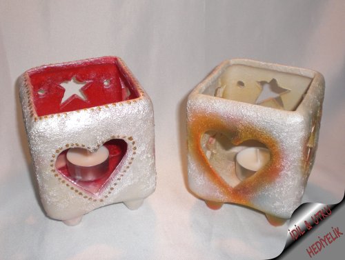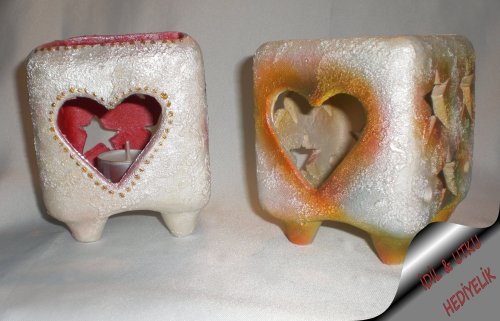 Ürünler Şamdan ve Mumluklar Kalpli Kare Mumluk |